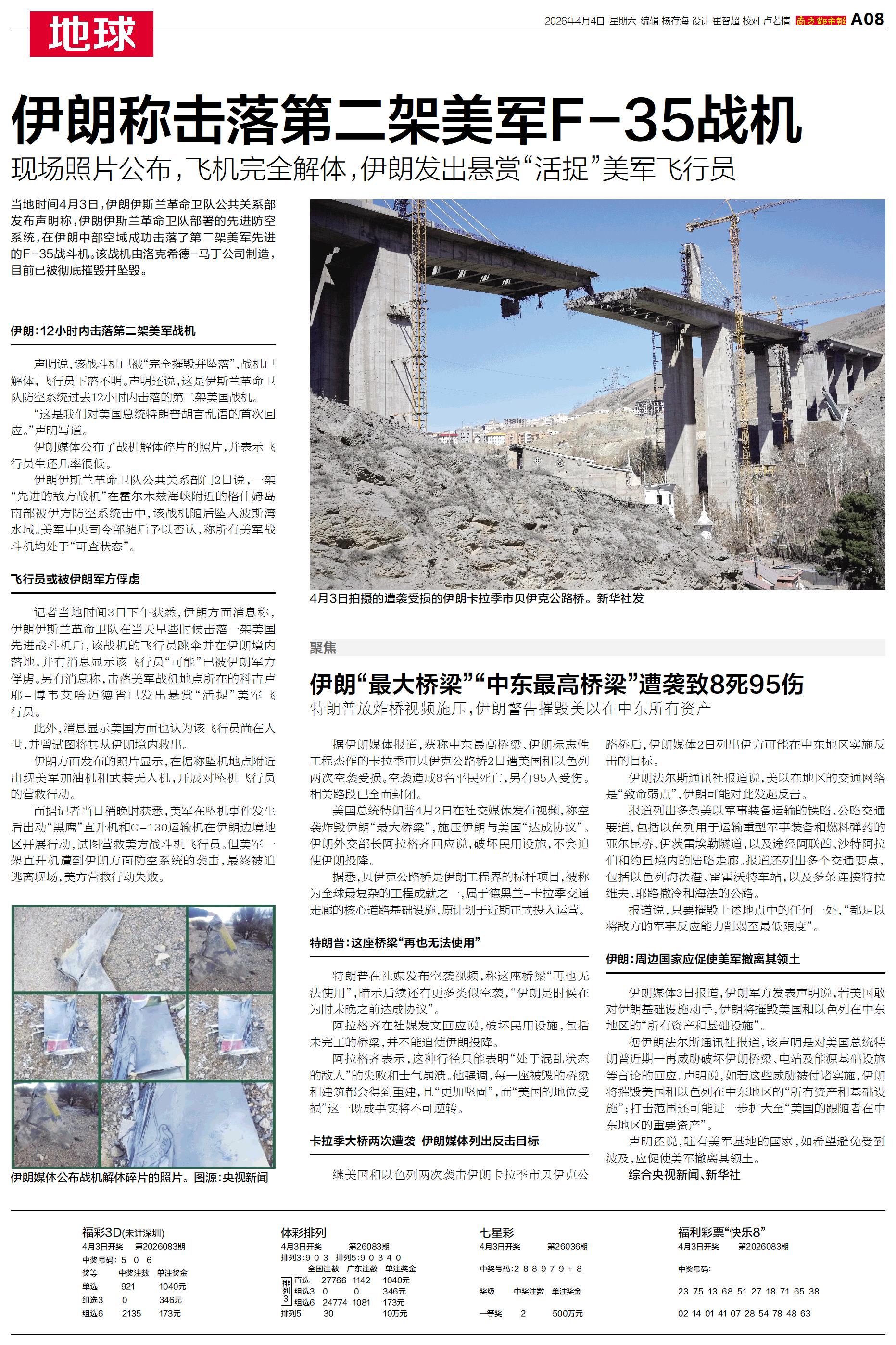 当地时间4月3日,伊朗伊斯兰革命卫队公共关系部发布声明称,伊朗伊斯兰革命卫队部署的先进防空系统,在伊朗中部空域成功击落了第二架美军先进的F-35战斗机。