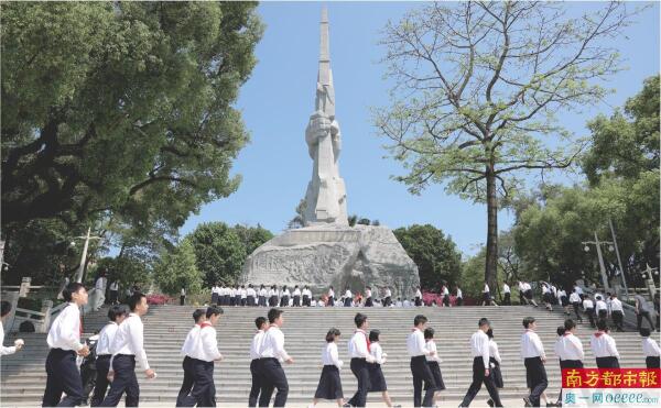 在全省各地的祭扫活动中,退役军人将红色故事送进校园,将课堂搬到了烈士陵园。