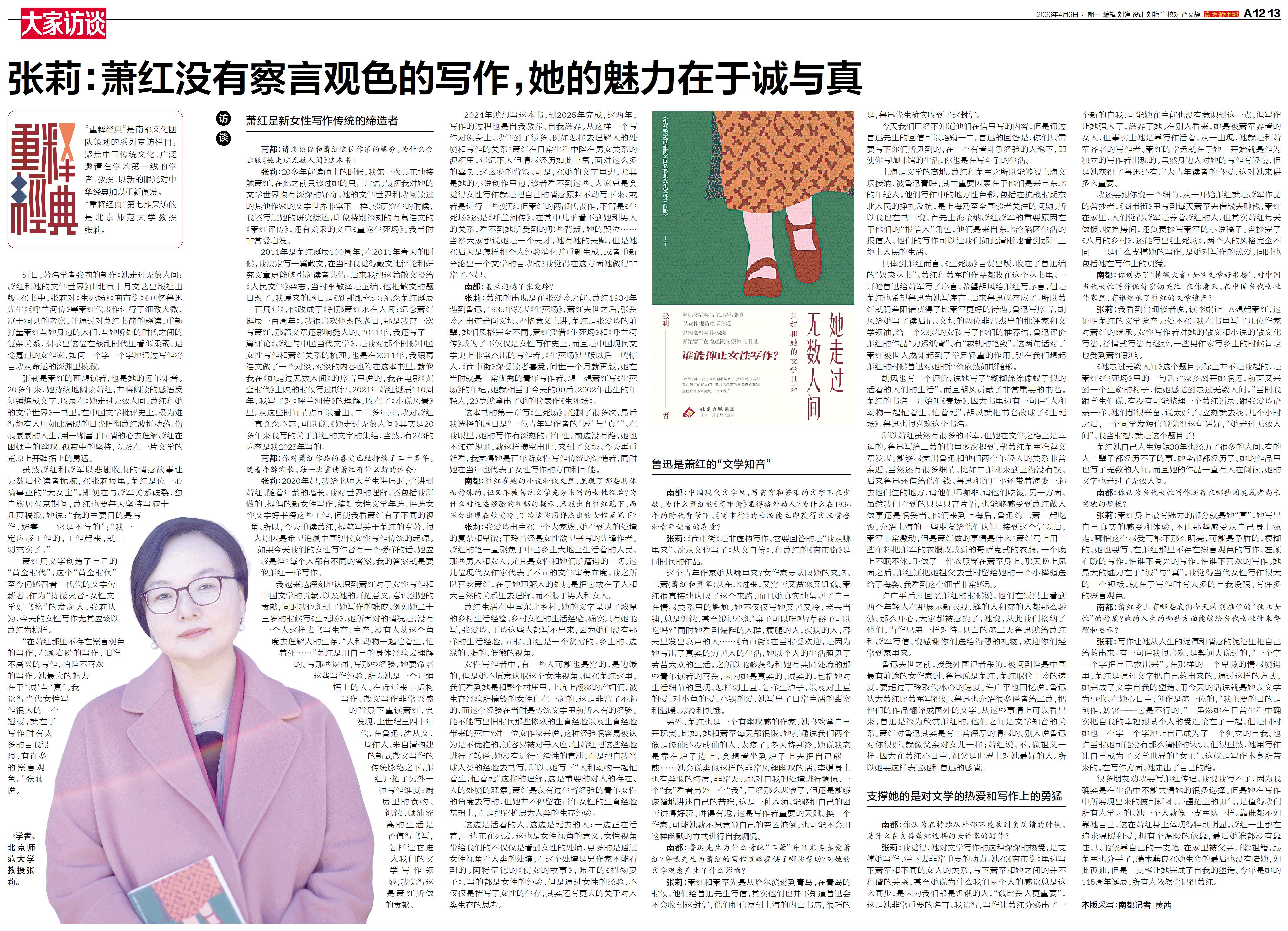 张莉:萧红没有察言观色的写作,她的魅力在于诚与真