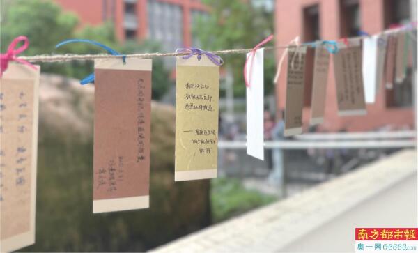 广州医科大学基础医学院学生用小书签书写对“大体老师”的感恩。