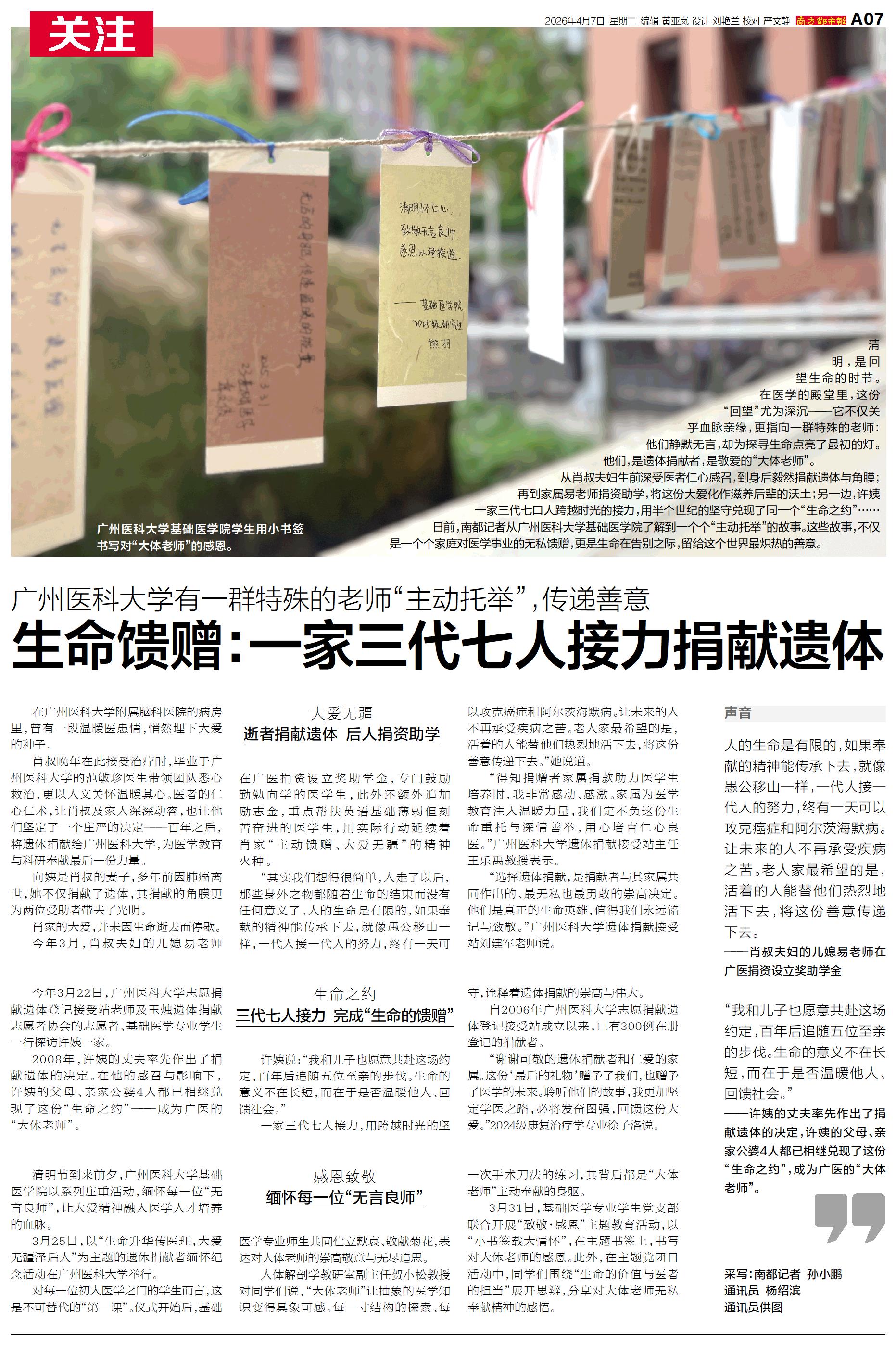 生命馈赠:一家三代七人接力捐献遗体