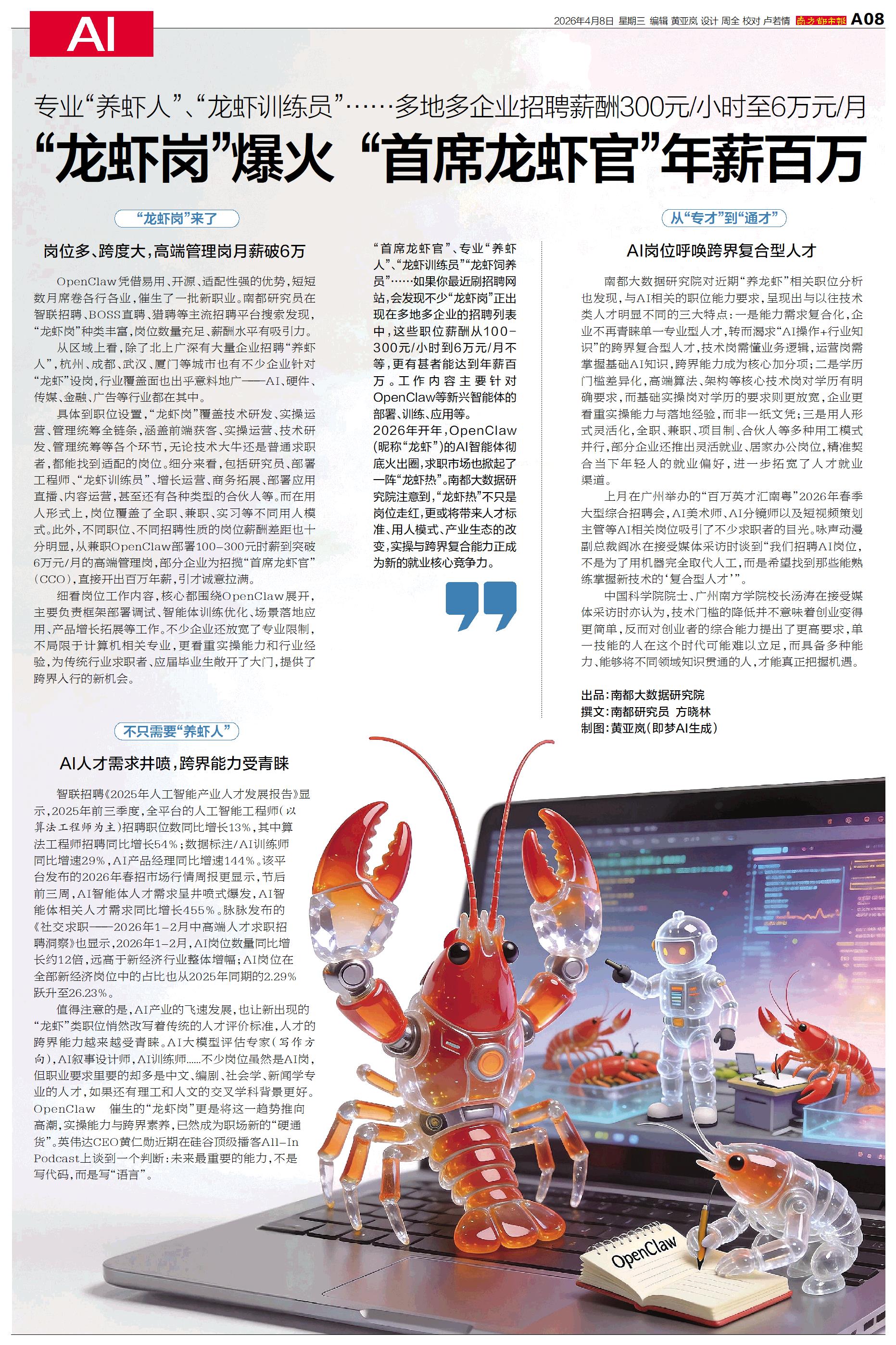 如果你最近刷招聘网站,会发现不少“龙虾岗”正出现在多地多企业的招聘列表中,这些职位薪酬从100-300元/小时到6万元/月不等,更有甚者能达到年薪百万。