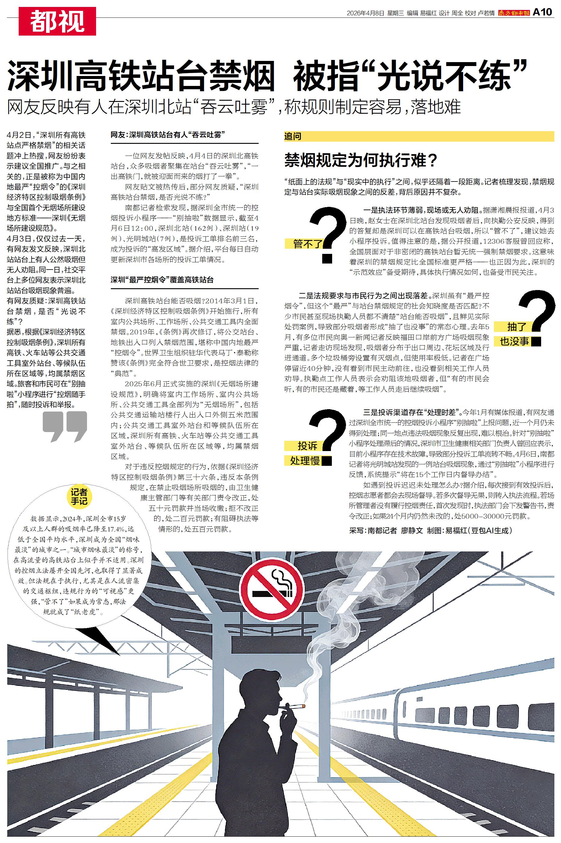 4月2日,“深圳所有高铁站点严格禁烟”的相关话题冲上热搜,网友纷纷表示建议全国推广。