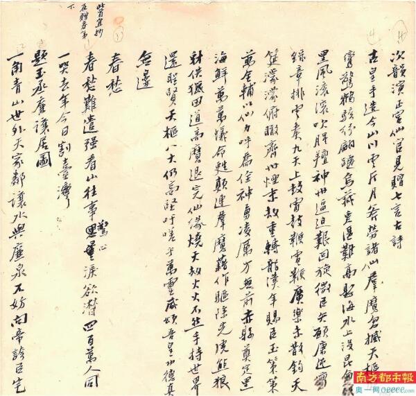 此时此刻,抗日保台志士丘逢甲的《春愁》重回公众视野——“四百万人同一哭”的悲愤,承载着百年前的家国破碎之痛。让我们走进广东省档案馆,重温这份珍贵手稿,让“春愁”化为“春晖”,让“念台”终成团圆。