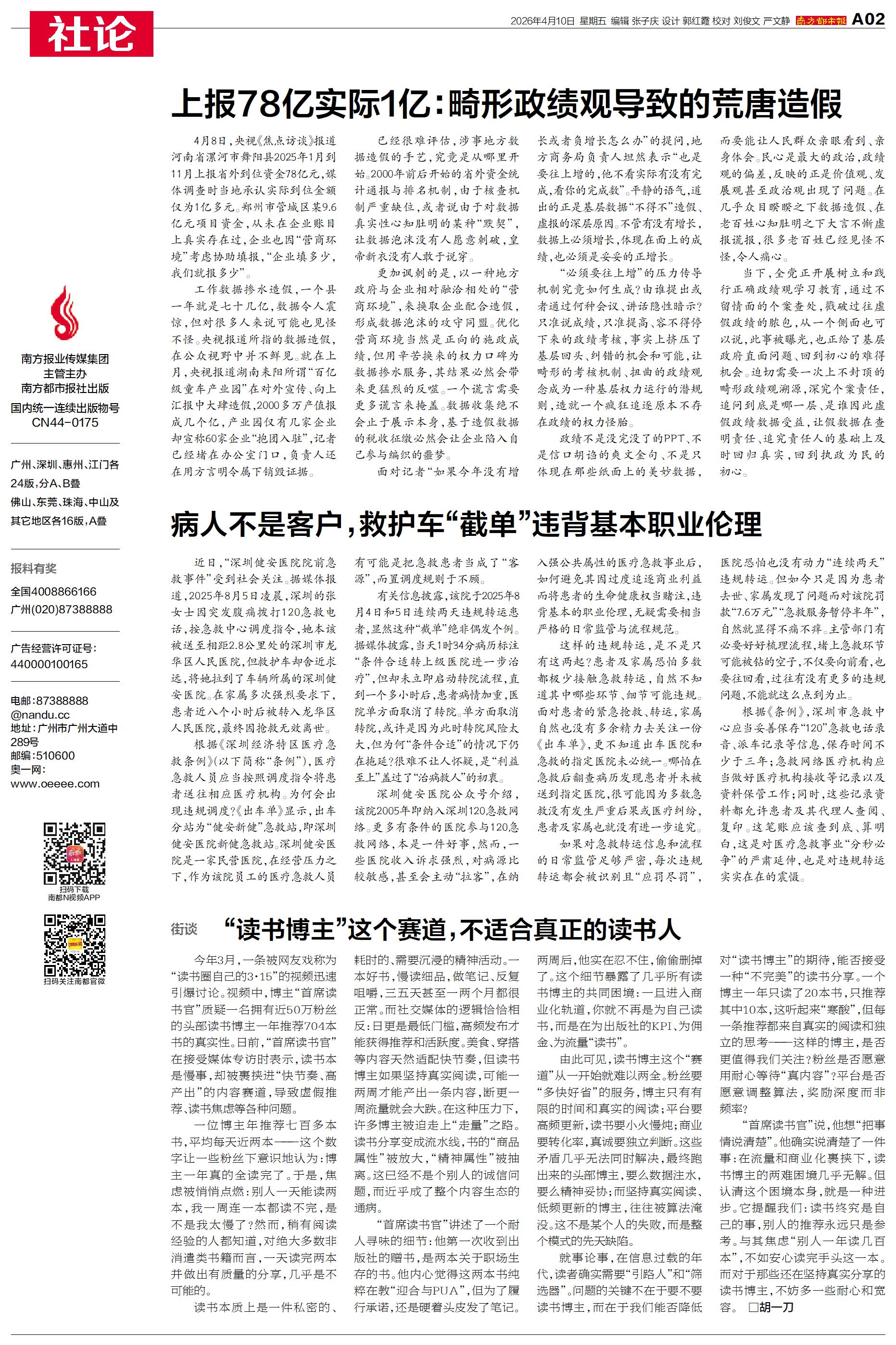 这笔账应该查到底、算明白,这是对医疗急救事业“分秒必争”的严肃延伸,也是对违规转运实实在在的震慑。