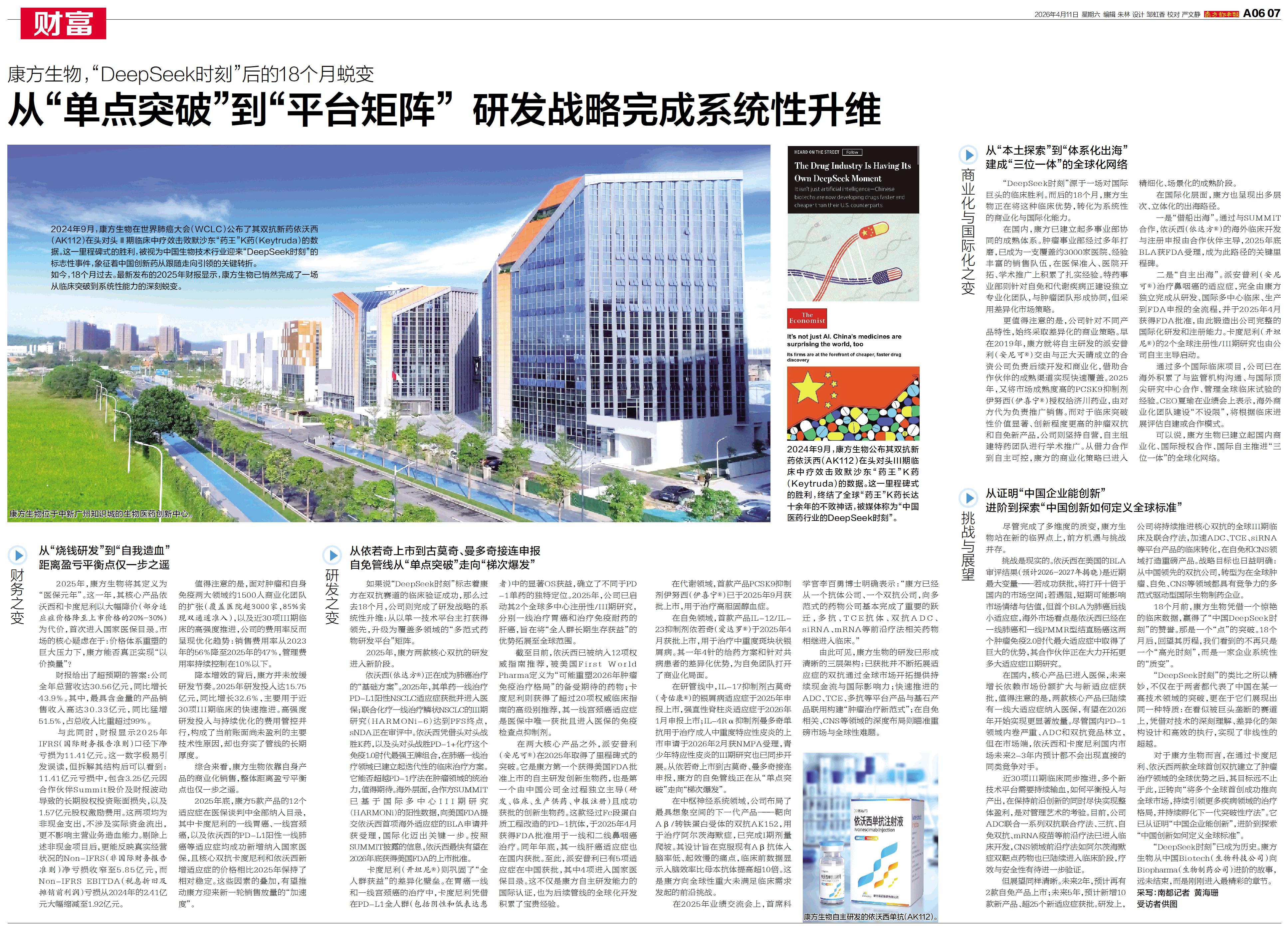 2024年9月,康方生物在世界肺癌大会(WCLC)公布了其双抗新药依沃西(AK112)在头对头Ⅲ期临床中疗效击败默沙东“药王”K药(Keytruda)的数据。