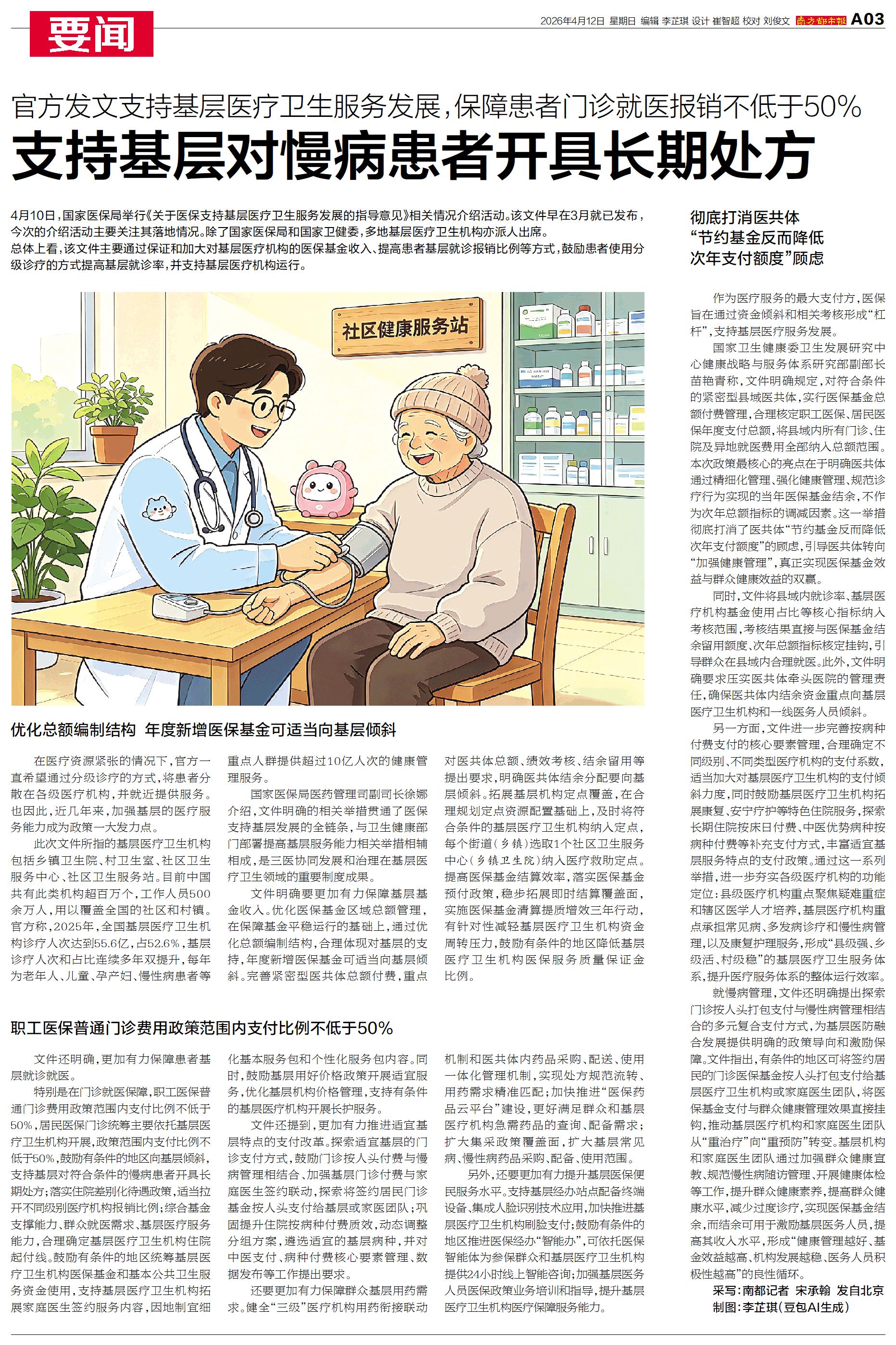 4月10日,国家医保局举行《关于医保支持基层医疗卫生服务发展的指导意见》相关情况介绍活动。