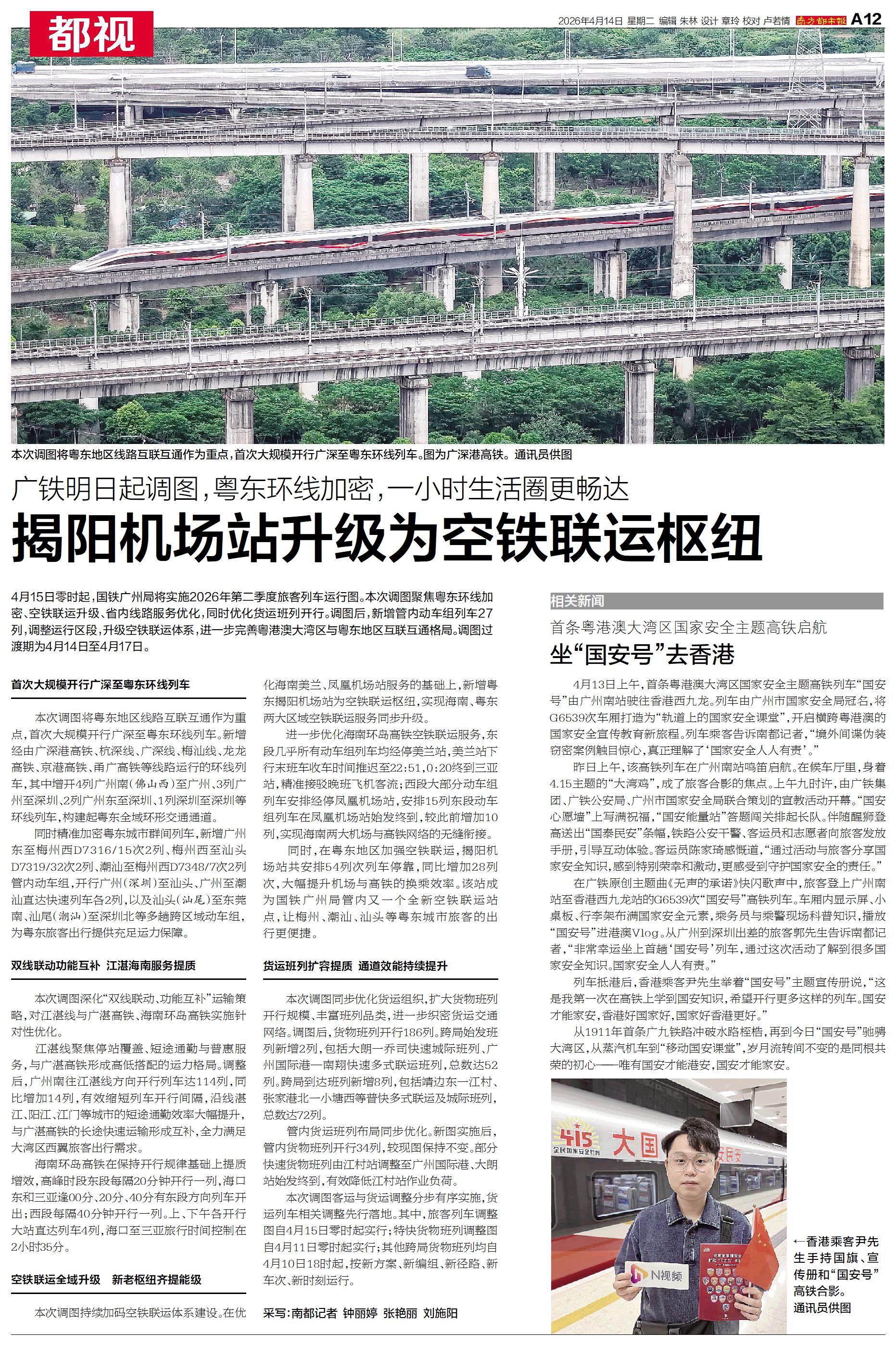 4月15日零时起,国铁广州局将实施2026年第二季度旅客列车运行图。