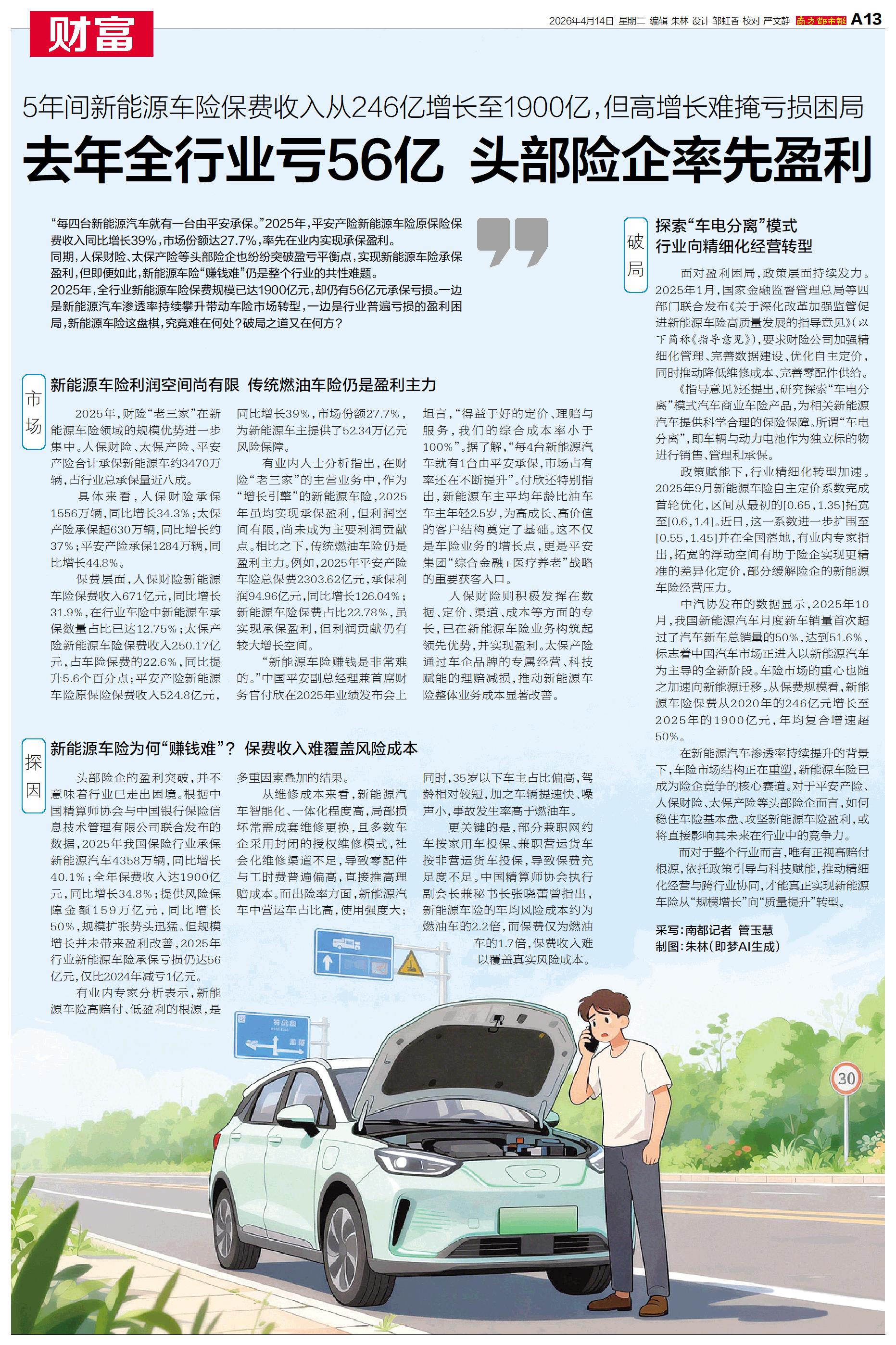 “每四台新能源汽车就有一台由平安承保。”2025年,平安产险新能源车险原保险保费收入同比增长39%,市场份额达27.7%,率先在业内实现承保盈利。