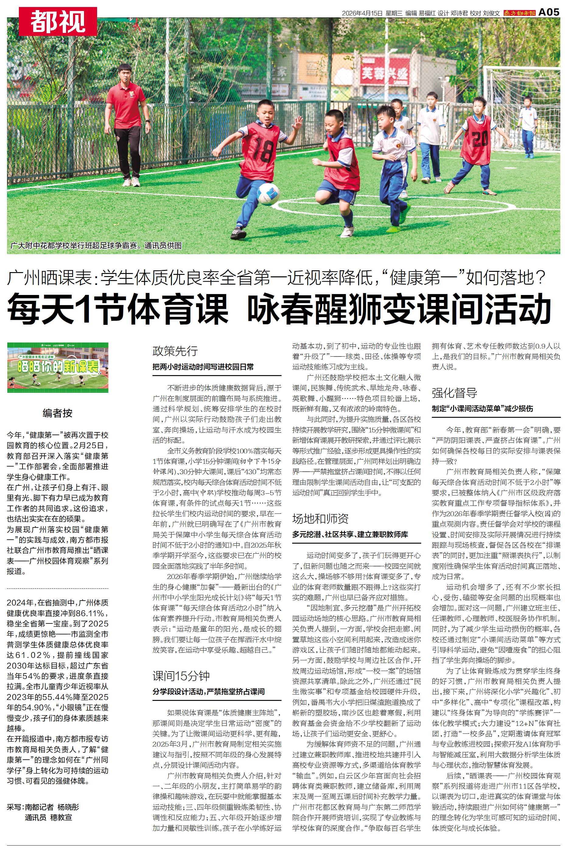 在开篇报道中,南方都市报专访市教育局相关负责人,了解“健康第一”的理念如何在“广州同学仔”身上转化为可持续的运动习惯、可看见的强健体魄。
