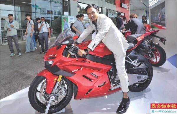 南都记者注意到,张雪机车展台现场,不少外国客商纷纷咨询工作人员:何时才能在本国买到?有采购商表示,此前是通过网络和视频内容了解到这个品牌,“它赢得了国际比赛”。