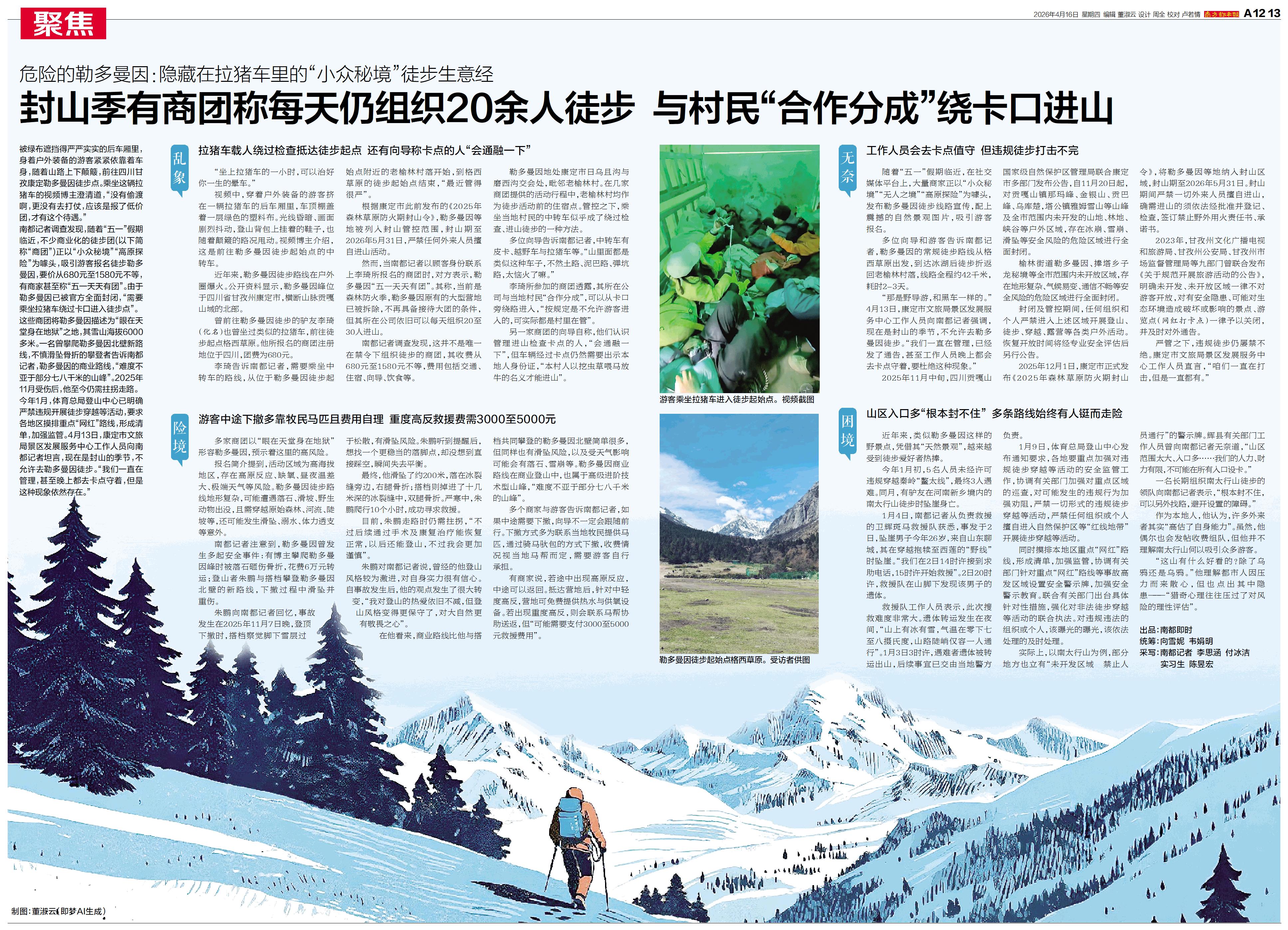 封山季有商团称每天仍组织20余人徒步 与村民“合作分成”绕卡口进山