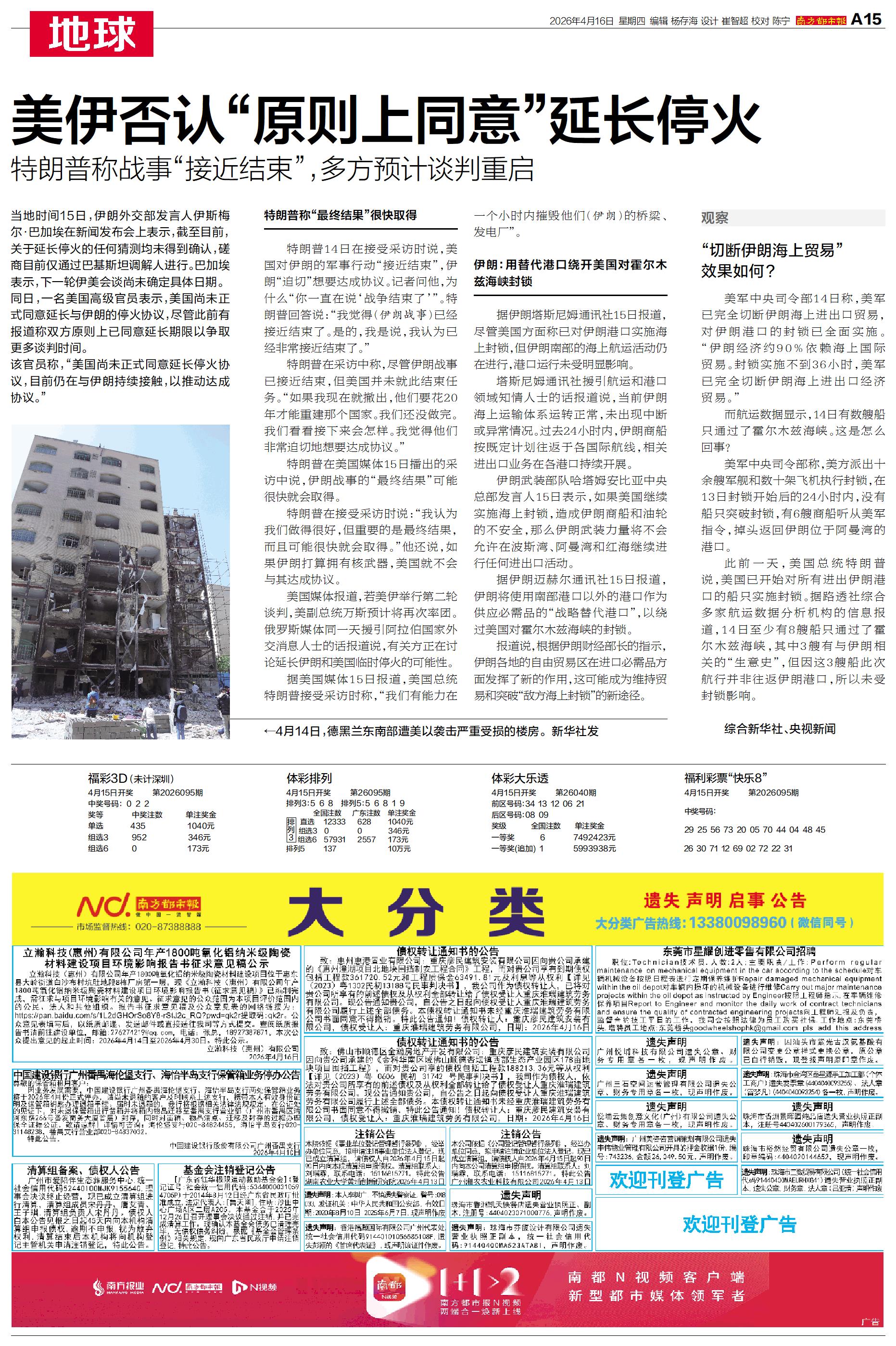 当地时间15日,伊朗外交部发言人伊斯梅尔·巴加埃在新闻发布会上表示,截至目前,关于延长停火的任何猜测均未得到确认,磋商目前仅通过巴基斯坦调解人进行。