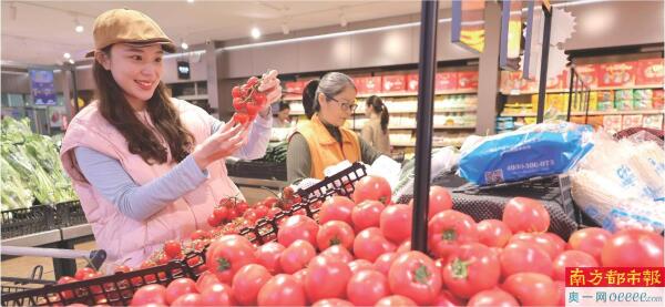 4月10日,消费者在山东省枣庄市一家超市选购小西红柿。 新华社发