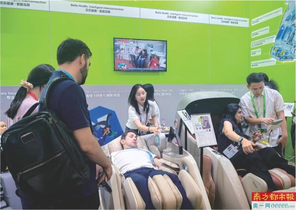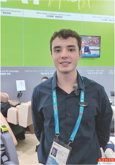 D区的一个展位前,几排按摩椅被围得水泄不通。一位年轻人坐上按摩椅,几分钟后,他起身说道:“Comfortable!”他叫Erick,今年19岁,来自巴西。这是他第一次来中国。受“老广交”父亲的影响,他今年独自来到广州参加广交会,延续了这份商业传承。这一次,他还化身为南都“广货推荐官”,用亲身体验为“广货”代言。