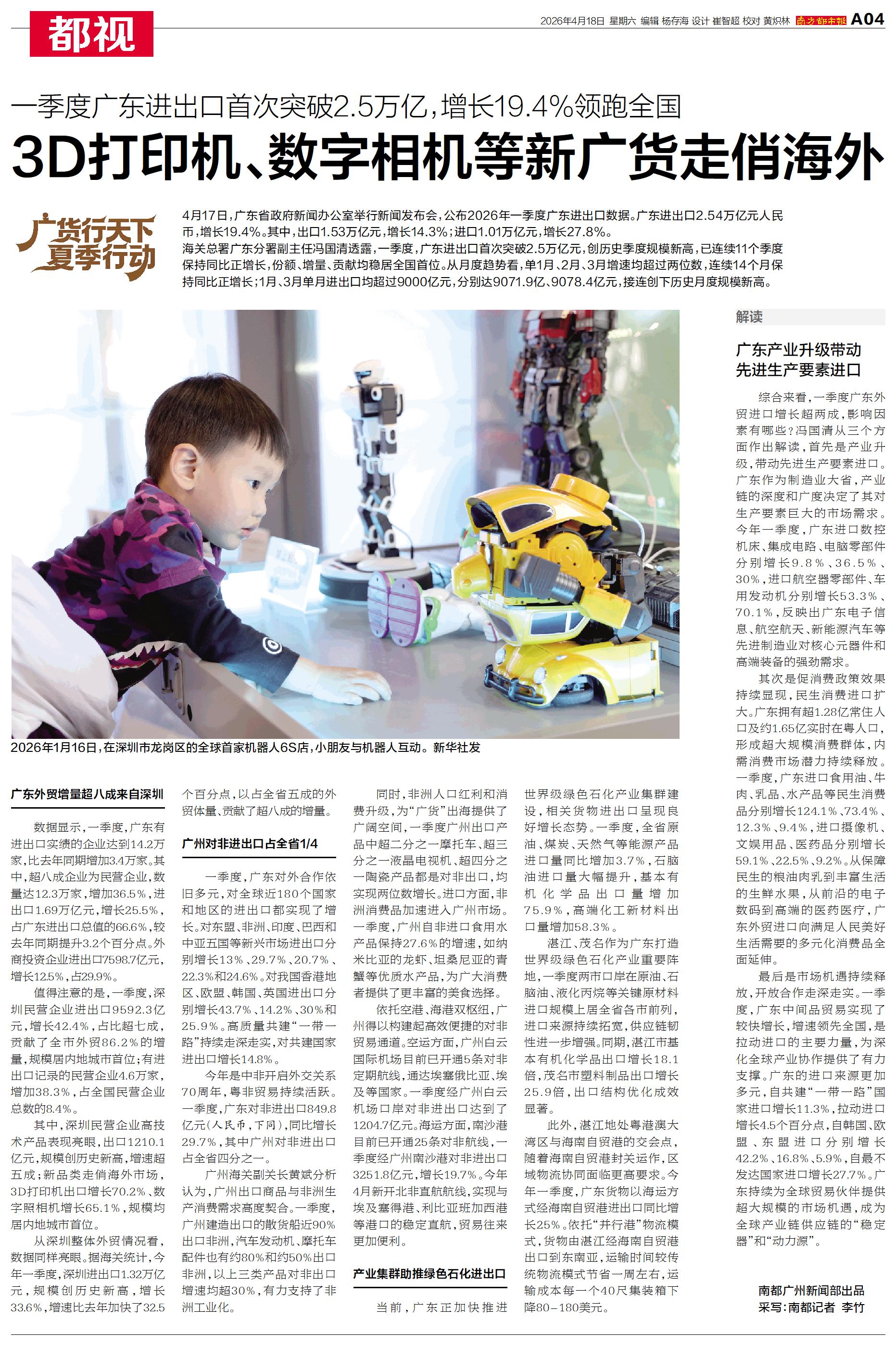 4月17日,广东省政府新闻办公室举行新闻发布会,公布2026年一季度广东进出口数据。