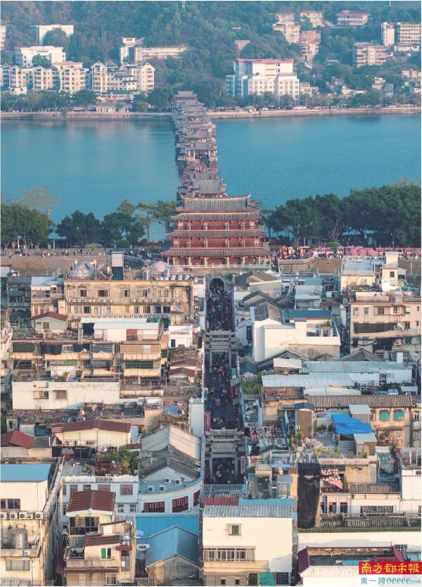 潮州广济桥、广济楼和潮州古城。 新华社发