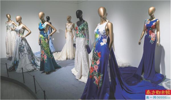 潮州潮绣艺术馆内展示的带有潮绣元素的现代婚纱礼服。 新华社发