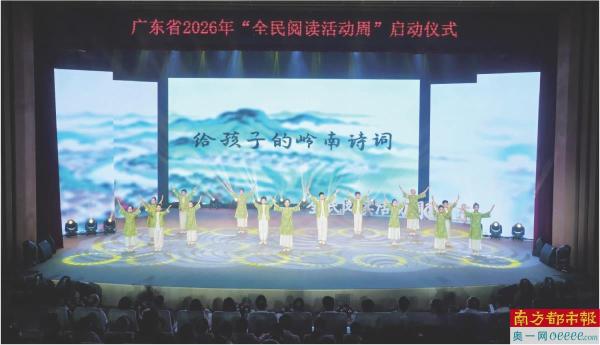 4月22日下午,广东省2026年“全民阅读活动周”启动仪式在广州白鹅潭大湾区艺术中心举行。活动现场发布了“四个大系”出版工程、广东全民经典阅读大赛、《村民讲村史》系列读物编撰等多项重点文化项目,并集中发布了近50项广东省2026年全年重点阅读活动,标志着以“书香岭南 学以致远”为主题的全民阅读与终身学习系列活动全面拉开序章。