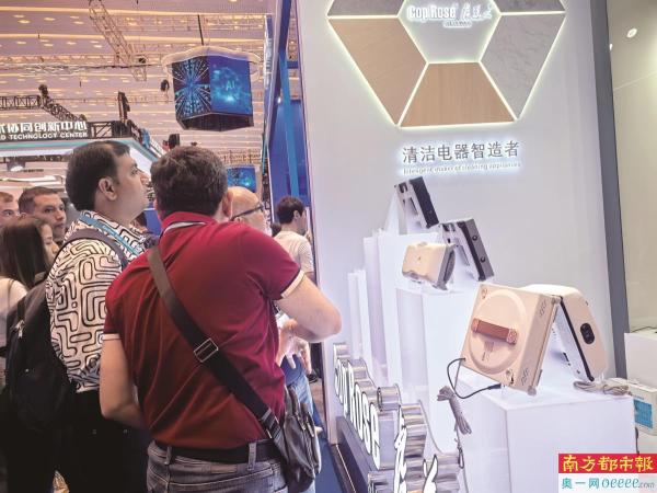 当南都记者走到深圳市鸿绪锦科技有限公司的展位时,来自叙利亚的采购商Mazek Akh正在仔细端详着展台上的智能擦窗机器人和情绪对话机器人,不时拿起手机拍照。在展位入口处,不同肤色的海外客商,操着不同口音的英语轮流向企业代表提出他们关心的产品问题。