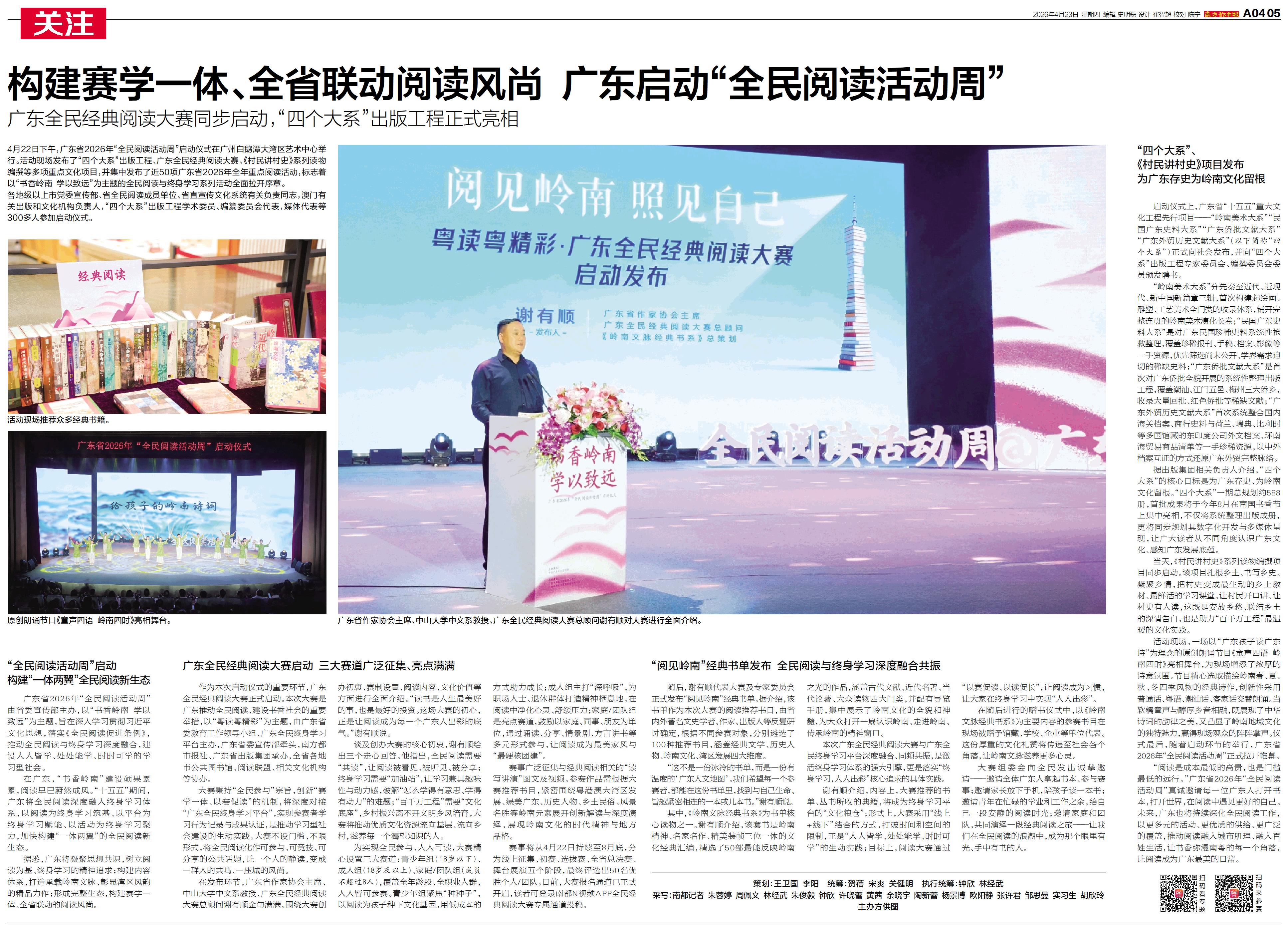 构建赛学一体、全省联动阅读风尚 广东启动“全民阅读活动周”