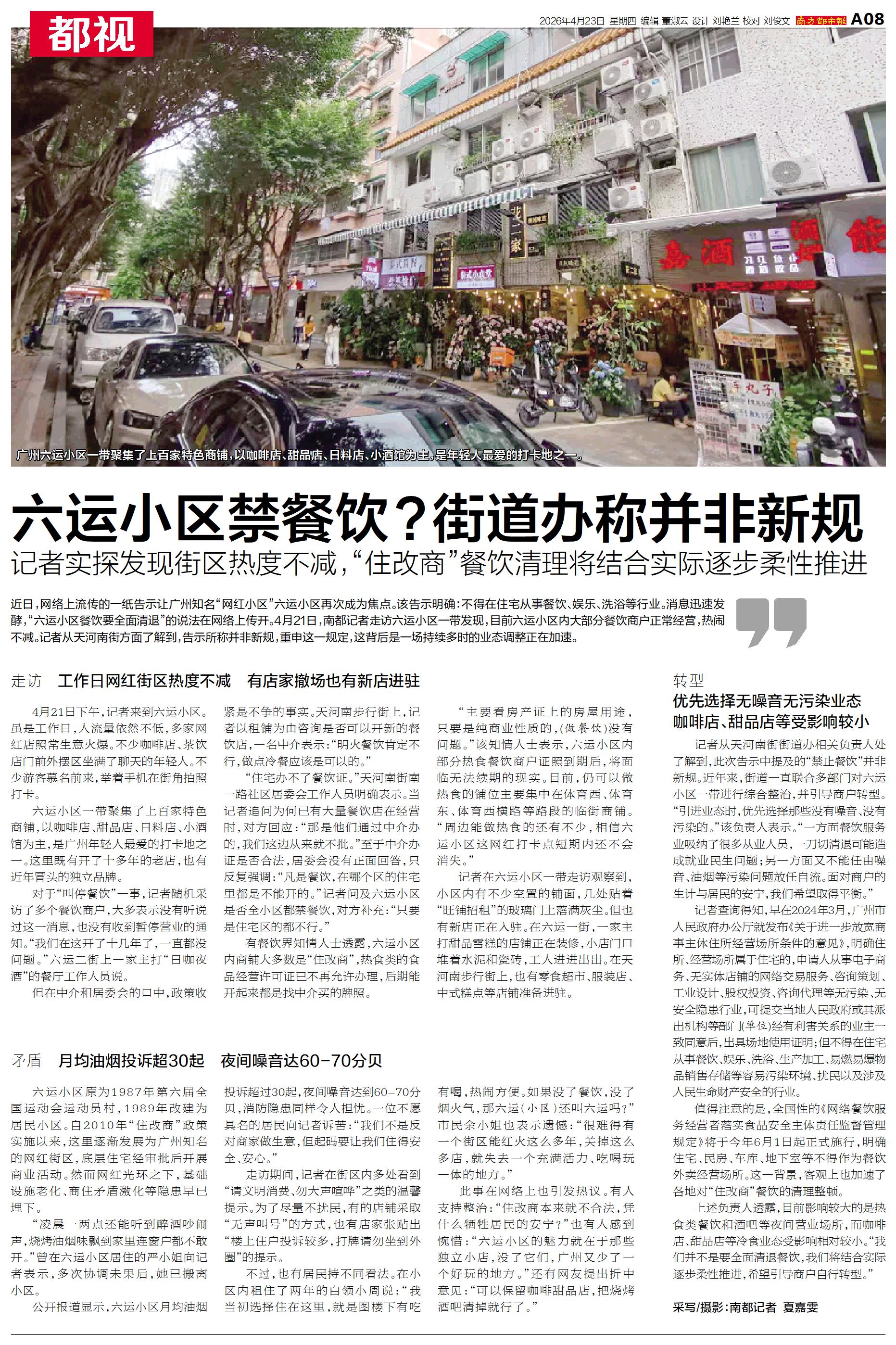 近日,网络上流传的一纸告示让广州知名“网红小区”六运小区再次成为焦点。该告示明确:不得在住宅从事餐饮、娱乐、洗浴等行业。消息迅速发酵,“六运小区餐饮要全面清退”的说法在网络上传开。