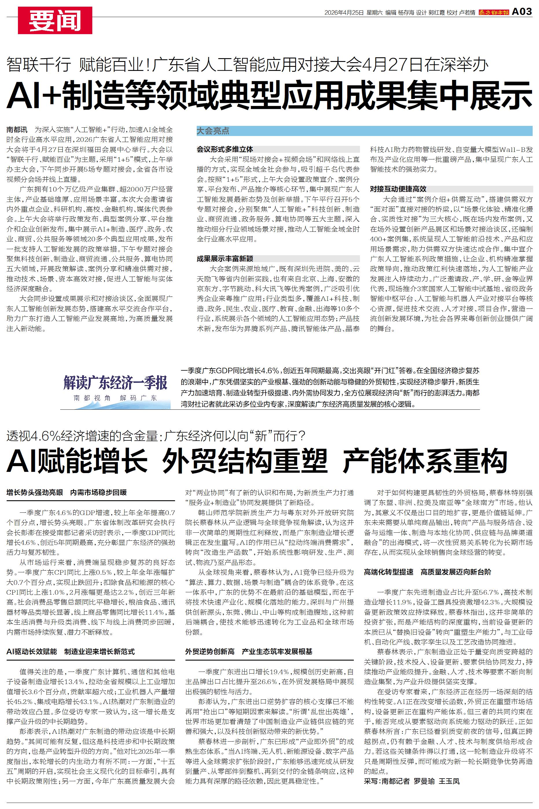 智联千行 赋能百业!广东省人工智能应用对接大会4月27日在深举办