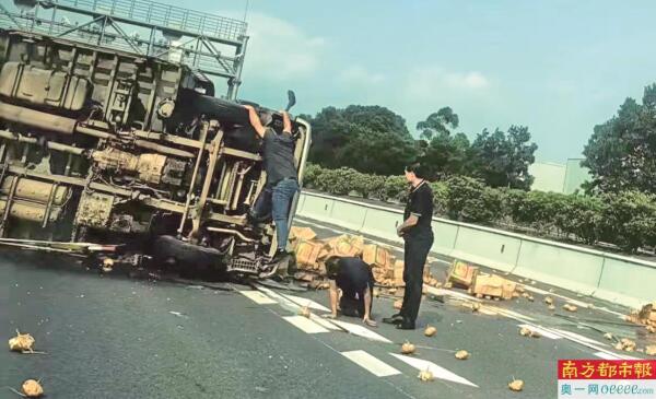 4月22日8时许,恩平市财政局工作人员何健伶和岑东扬去开会,途经沈海高速开平段时,发现一辆满载葛薯的货车突然侧翻,油箱的柴油不断溢出,情况十分紧急。