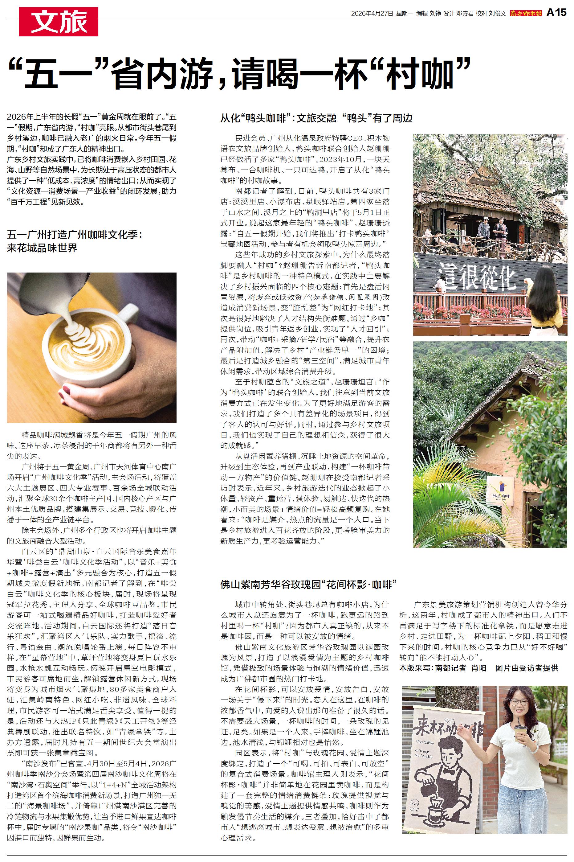 2026年上半年的长假“五一”黄金周就在眼前了。“五一”假期,广东省内游,“村咖”亮眼。