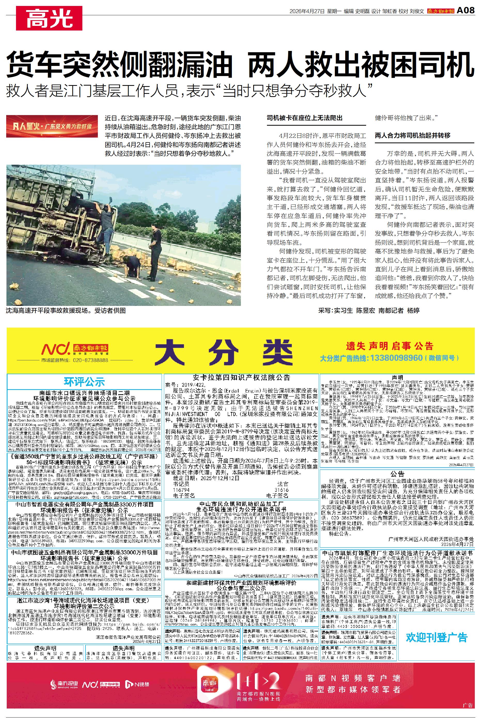 近日,在沈海高速开平段,一辆货车突发侧翻,柴油持续从油箱溢出。