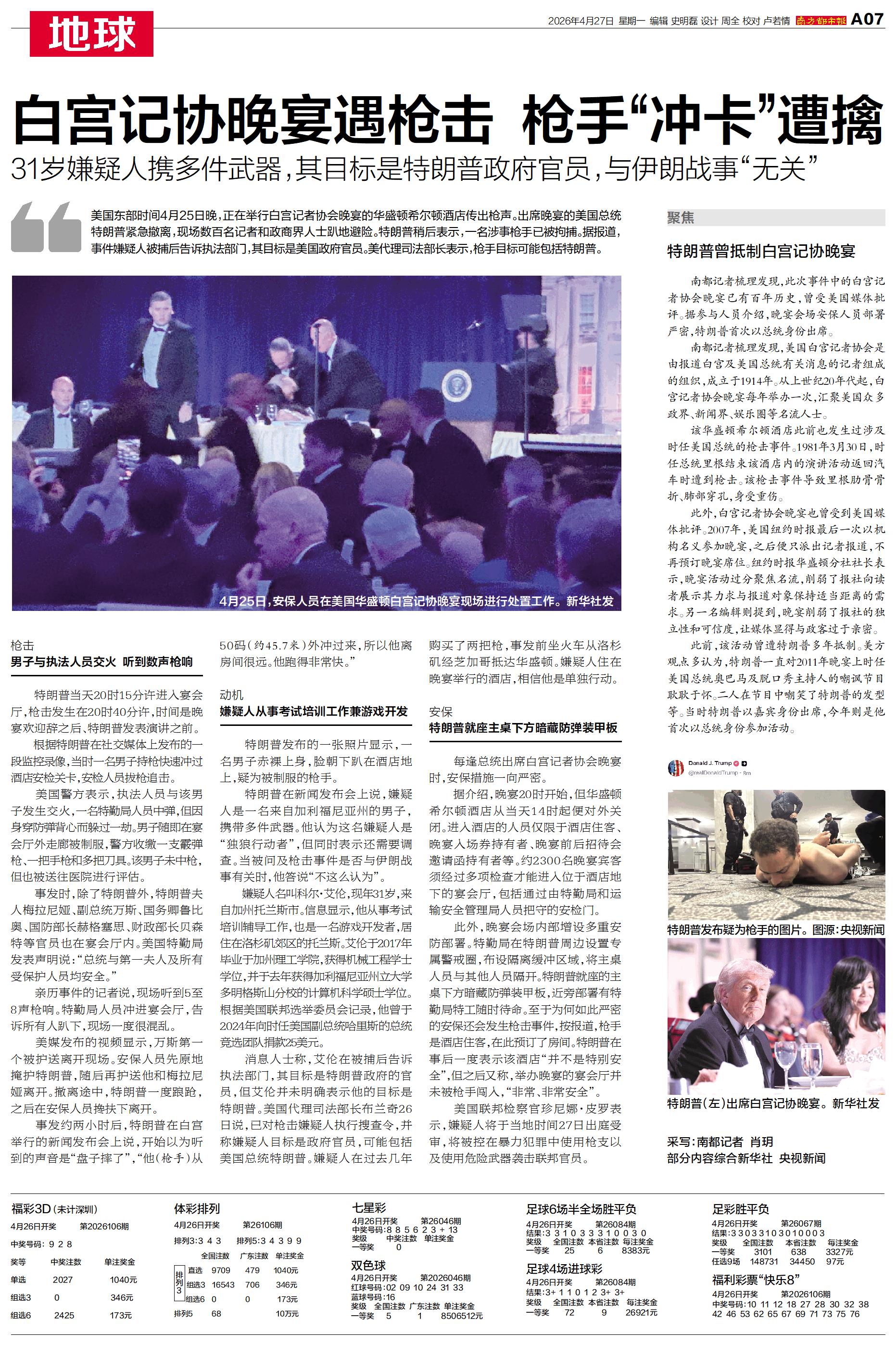 美国东部时间4月25日晚,正在举行白宫记者协会晚宴的华盛顿希尔顿酒店传出枪声。