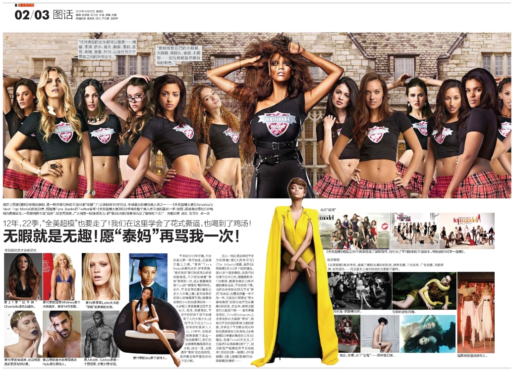 节目自2003年开播,不论你是从第一季开始追,还是偶尔瞄上几眼,“泰妈”T y raBanks的犀利点评、浮夸表情、“励志鸡汤”都已刻进观众深深的脑海里。不少粉丝喊着“泰妈”再骂我一次,低头看着微信里T yra的“婊情包”黯然神伤。此外,节目自带的撕B属性让多少人中毒上瘾;宣布结果时的惊心动魄隔屏可感;超模宿舍里的小心机也值得玩味……大多数人更是看着这档节目长大、变帅、变漂亮的,节目中的时尚干货不知哺育了几代少男少女。这档节目不仅让T yra的导师形象深入人心,12年中,在她的麻辣调教下走出一批批超模们,他们在全球模特圈混得风生水起、独当一面,全数遗传“泰妈”的自信有范,虽然最后销声匿迹的也不在少数。