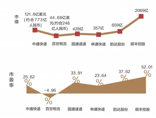 据国家邮政局数据显示,全国快递服务企业业务量累计完成400 .6亿件,同比增长28%,已经连续四年位居全球第。从顺丰、申通、韵达、圆通等A股上市公司近期发布的2017年财报看,企业收入与净利润依然处于上升轨道,四家A股上市公司平均30倍的市盈率也体现资本市场的信心。