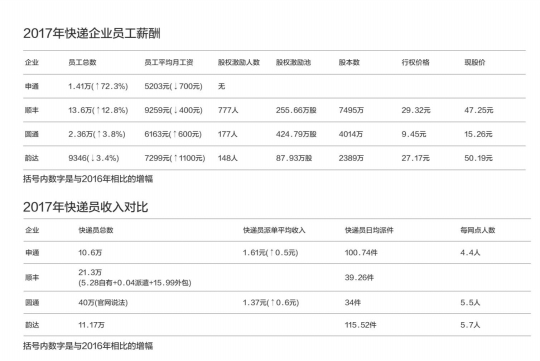 快递上市企业薪资水平大起底:
