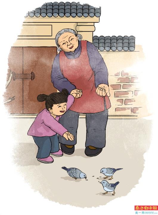 我最后一次回北京见到奶奶是在2018年初,尽管患有阿尔茨海默症的她已认不出我来,也因肾功能衰竭瘦得接近脱形,但搭在我手背上皱巴巴的手指仍旧是温柔的,讲起话来儿化音也是带笑的——和小时候领着我去喂麻雀的音调一样。那年我不过六七岁,被所有人叫着“小不点儿”,她穿着没有一点褶皱的枣红色背心,拉着我喂院子里的麻雀,又给我一件件地介绍家里的小摆设。其中有一只毛茸茸的大狗,我们飞回去奔丧的时候还趴在一样的地方,只不过因为没人打理显得乱糟糟的,原本雪白的绒毛落上一层灰了。