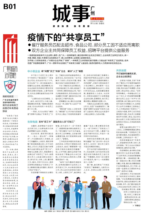 一场疫情的暴发将不少企业带入寒冬。在广州,一些传统餐饮、娱乐场所等行业无法正常复工,企业和员工生存压力巨大。另一方面,商超、快递、外卖等行业在疫情之下,用人需求剧增,出现用工紧缺的情况。为平衡人力资本
