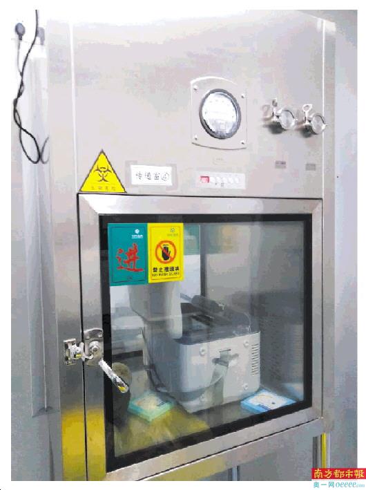 “传递窗”,也叫做Air Lork,空气锁。顾名思义,与空气有关,这个传递窗有不能同时打开的双重门,保证传递样本时带进去的空气被隔离在双重门中,保证实验室外的环境不受污染。这也是“三流”中的“物流”。
