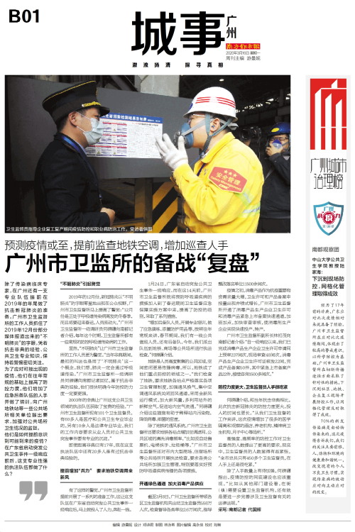 除了传染病临床专家,在广州还有一支专业队伍提前在2019年的年尾做了抗击新冠肺炎的准备。广州市卫生监督所的工作人员抓住了2019年12月份部分媒体报道出来的“不明肺炎”的字眼,凭着抗击非典的经验、公共