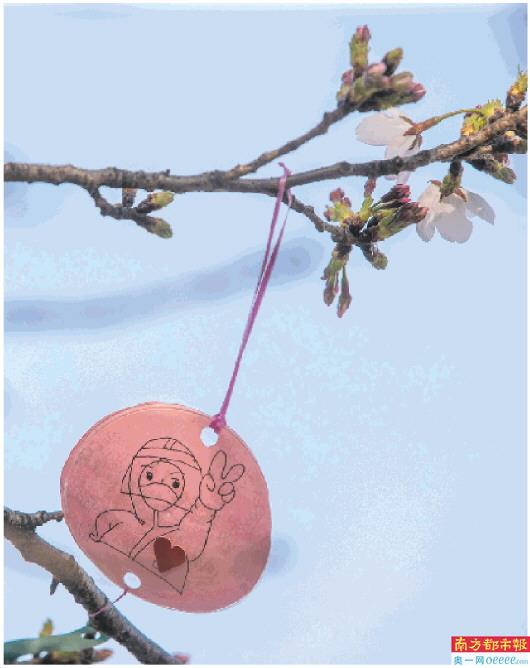 2020年3月19日,湖北武汉,晴川假日酒店的樱花树上,挂着支援武汉医疗队队员们的心愿。 南都特派记者 谭庆驹