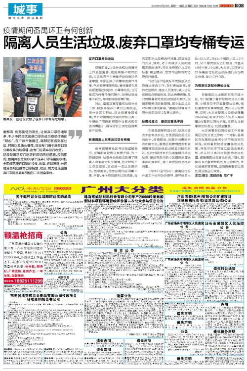 隔离人员生活垃圾、废弃口罩均专桶专运