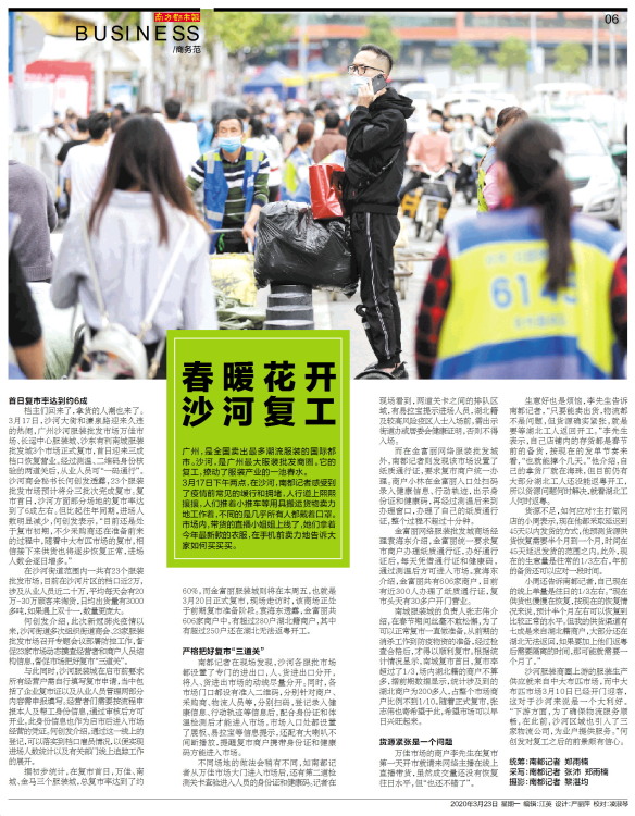 广州,是全国卖出最多潮流服装的国际都市。沙河,是广州最大服装批发商圈。它的复工,撩动了服装产业的一池春水。3月17日下午两点,在沙河,南都记者感受到了疫情前常见的缓行和拥堵,人行道上熙熙攘攘,人们推着