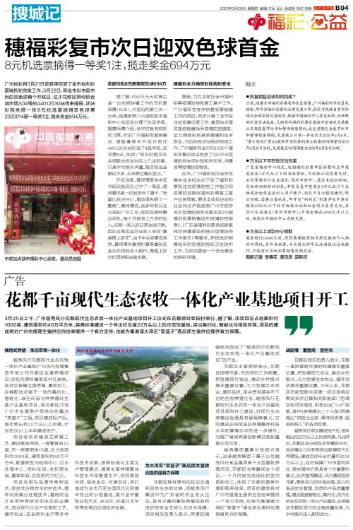 广州福彩自3月21日起有序恢复了全市福利彩票销售和兑奖工作。3月22日,即全市彩市复市后的双色球首个开奖日,位于花都区狮岭镇合诚市场A04号的44012030站传来捷报,该站彩民凭借一张8元机选票摘得