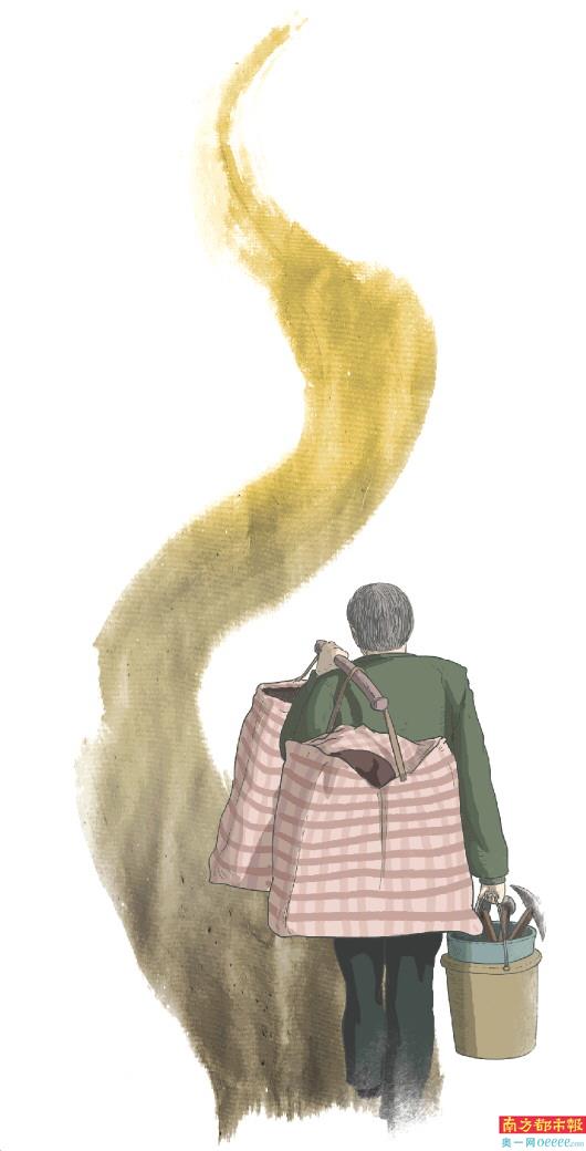 父辈们开始走出大山,在一些更为偏远的山区承包一些小矿尾矿开采,大额的投入,太多的不可预见,让淘金这个行当充满了高度的刺激和风险。父亲经历过一元钱的投入,三个月后变成十元的高光时刻,也经历过投入数十万,带回家的只有几个钢镚的血本无归。记得亏损最严重的那次,他从遥远的新疆,在绿皮火车上颠簸了几天几夜才回到家,灰头土脑,面如死灰,但看到我们,还是勉强挤出了一丝笑容。即便如此,我们还是从他的包中掏出了带给我们的哈密瓜干,至今我仍记得那浓浓的香甜和饱满的韧劲,那是我吃过的最好吃的零食。虽然不止亏损过一次,但由于赚的次数更多,再加上父亲的经营有度,上世纪90年代末,我们家的财富累积到近百万,但父亲铁打的身躯,却再也直不起。