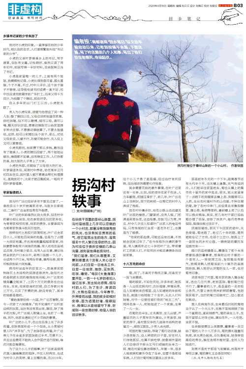 编者按:南都语闻“回乡笔记”征文自年前启动以来,已收到投稿千余篇。下面这篇,写了村庄里的几个人和事,写出了他们的生老病死,命运起伏。在纵横千百里的秦岭山脉里,拐沟村是地图上几乎可以忽略的一个小村庄。那