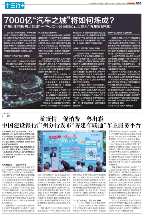 抗疫情 促消费 粤出彩 中国建设银行广州分行发布“善建车联通”车主服务平台