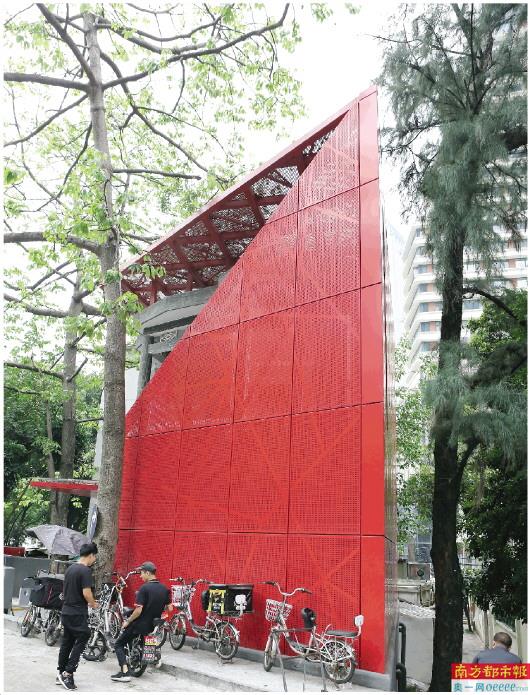 红色作为广东革命传统文化的象征,一直就与广州的城市历史息息相关。当公厕旁边的红棉花开的时候,公厕外衣的红和花的颜色交映生辉。