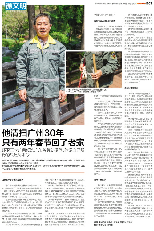 他清扫广州30年 只有两年春节回了老家