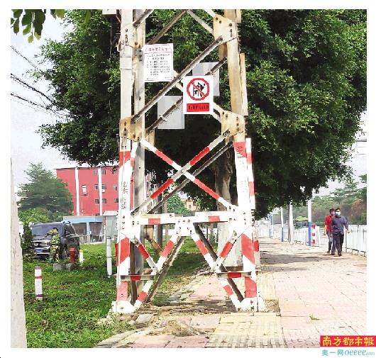 广东稳固检测鉴定公司附近的盲道中间立着电线杆。