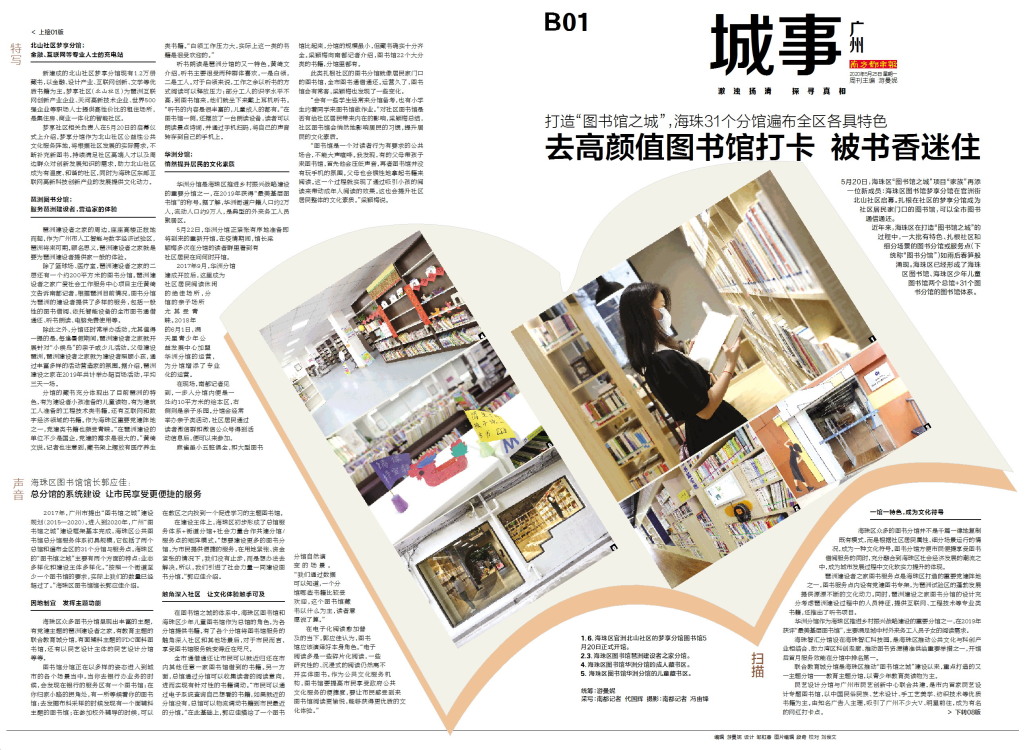 5月20日,海珠区“图书馆之城”项目“家族”再添一位新成员:海珠区图书馆梦享分馆在官洲街北山社区启幕。扎根在社区的梦享分馆成为社区居民家门口的图书馆,可以全市图书通借通还。近年来,海珠区在打造“图书馆