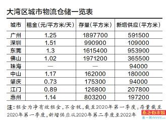 放眼整个大湾区,高力国际则指出,从2014年至2018年,大湾区内地城市的物流货物周转量的年复合增长率达到20%,凸显出大湾区物流业的迅速发展以及需求的急速上升。而2018年,大湾区交通运输、仓储和邮政业的增加值已经接近500亿美元。在大湾区的发展蓝图下,未来10年物流业以及对于高标仓的需求将上升到一个新的阶段。至2020年第一季度,大湾区高标仓存量达到770万平方米,预期未来3年(至2022年),该存量将会增加32%达1020万平方米,但是电商发展速度将达到60%,与之相比,存量的增速仍与需求的增速存在较大的差距。